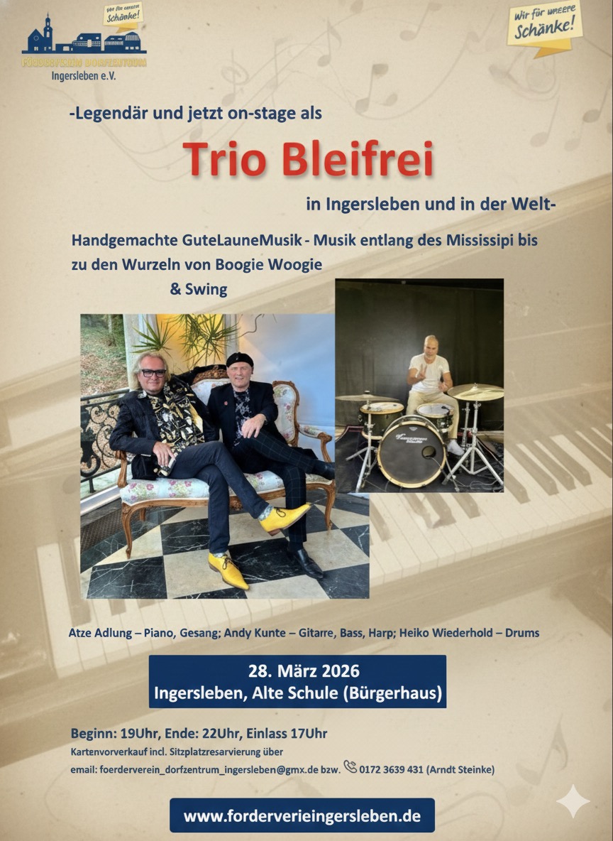28.März DBF Trio Ingersleben Boogie-Night Alte Schule 19 Uhr